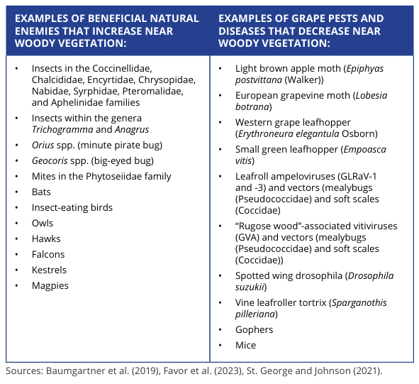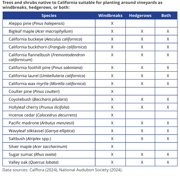 Windbreaks and hedgerows can offer many benefits to vineyards and the surrounding
